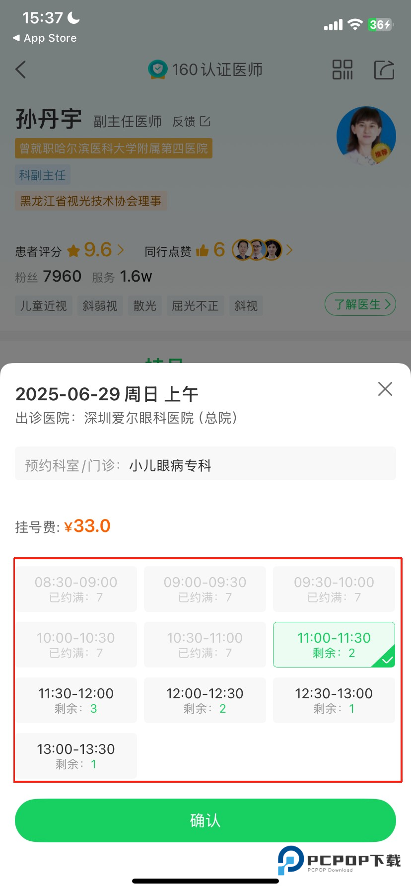 6、选择好具体的挂号时间后点击【确认】