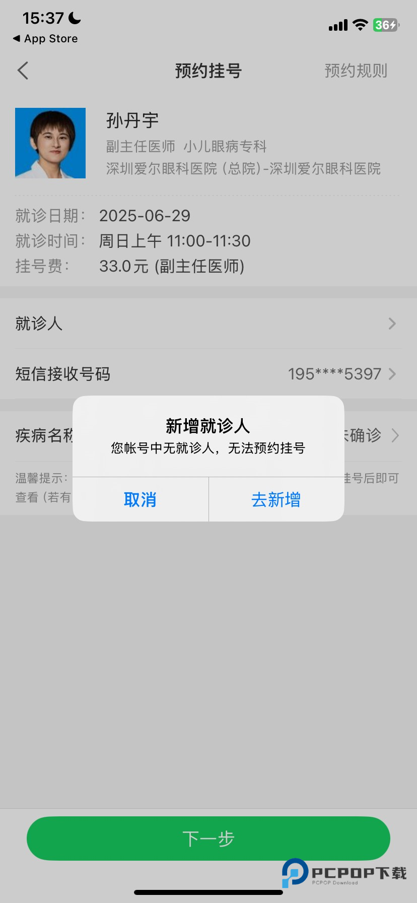 7、首次挂号需要添加【就诊人】,点击【去新增】
