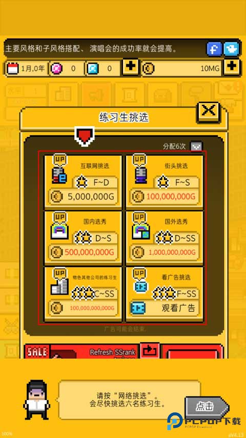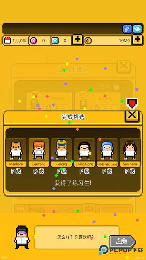 (3)等待互联网筛选之后,就能获得只有F级的练习生。