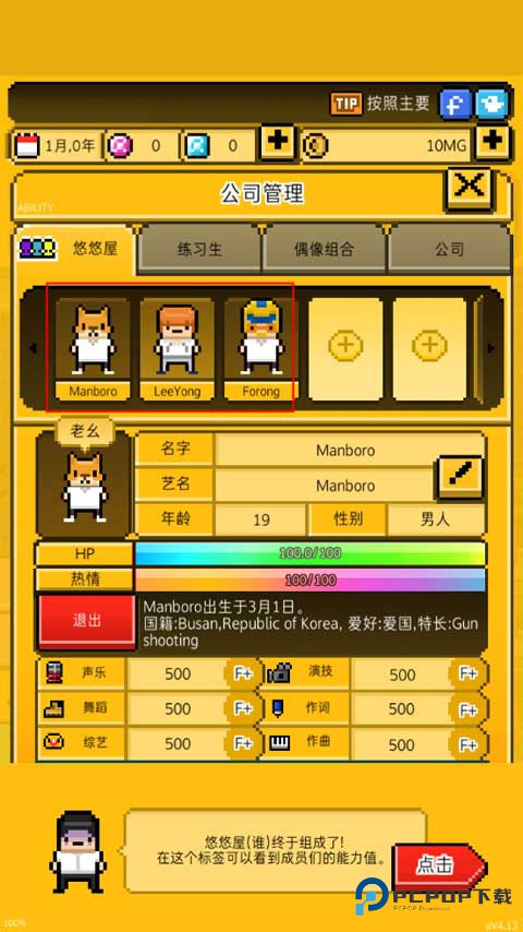 1、游戏初期有150名练习生可供选择,建议从中筛选出潜力最突出的几位,组建偶像团体,并为每位成员定制专属发展路线,精准提升核心能力。