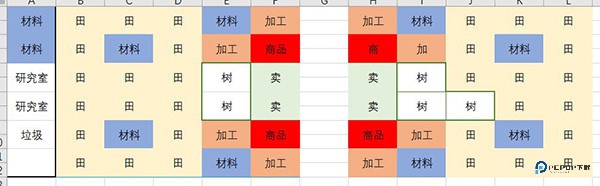 2、左边和右边田错开补充,先田,即材料多了,就建加工厂,材料少了,就搞田,