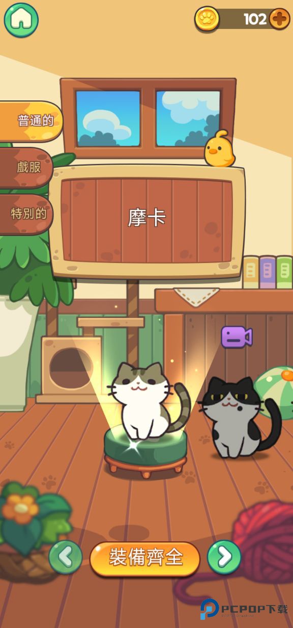 3、拥有完善的角色与装扮系统,提供超过25种猫咪品种和20种服装,玩家可自定义猫咪的外观,自由搭配各类服饰,打造专属萌猫,增强游戏的个性化体验。