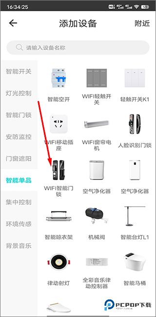 2、根据自身需求选择智能设备分类并选择智能设备;