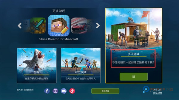 1、打开木筏生存多人联机版,在多人在线游戏下方点击玩