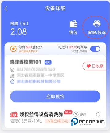 2、在设备使用页点击右上角【客服/投诉】