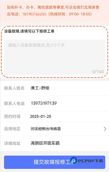 4、输入设备故障描述,提交故障报修工单即可