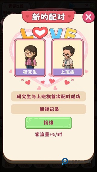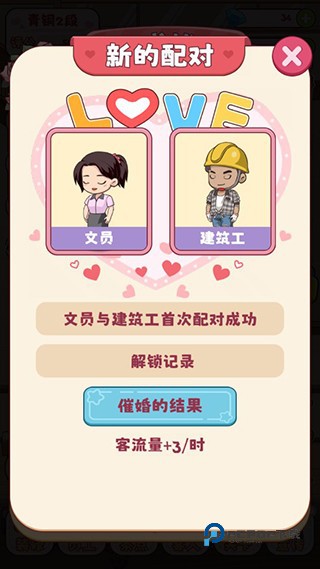 1、独特的游戏背景:以婚姻介绍所为背景,让玩家体验不一样的模拟经营乐趣。