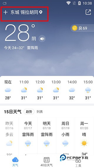 1、在本站下载并安装软件后打开,进入软件首页后点击左上角的城市;