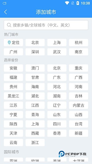 2、在众多城市中找到自己所在的城市,还可以使用自动定位功能;