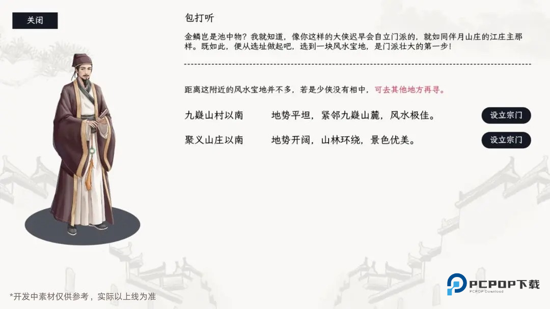 当少侠达成指定条件(江湖名望+基础材料+金币)后,可找【包打听】选择心仪地图设立宗门,地图上其他江湖势力也会显现,少侠可通过招募高手、派遣弟子外出历练完成宗门事务获取资源,自由发展势力。