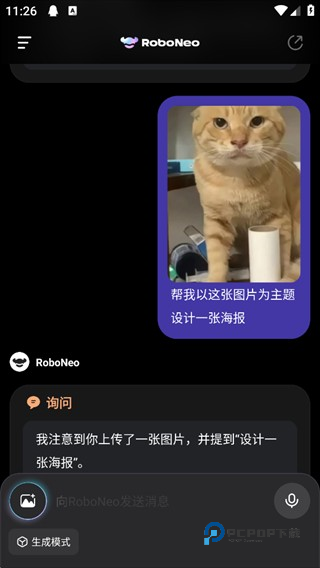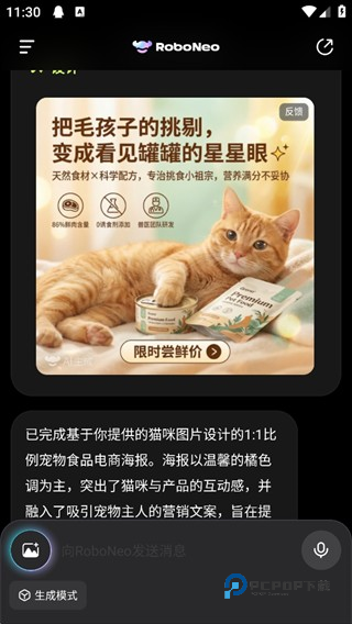 2、向RoboNeo提出你的编辑需求,比如以下图为例,要求根据图片生成一张1:1的海报。