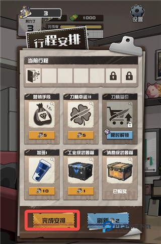 6、根据收益与增益合理组合行程,确认无误后点击【完成安排】。