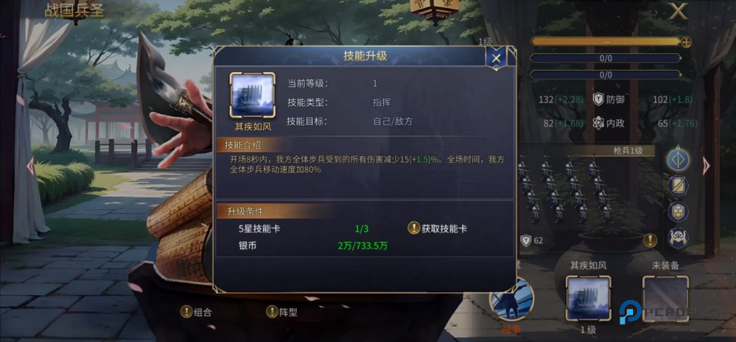 推荐兵种:武士,特别提示:孙武的基础攻击数值高达132!