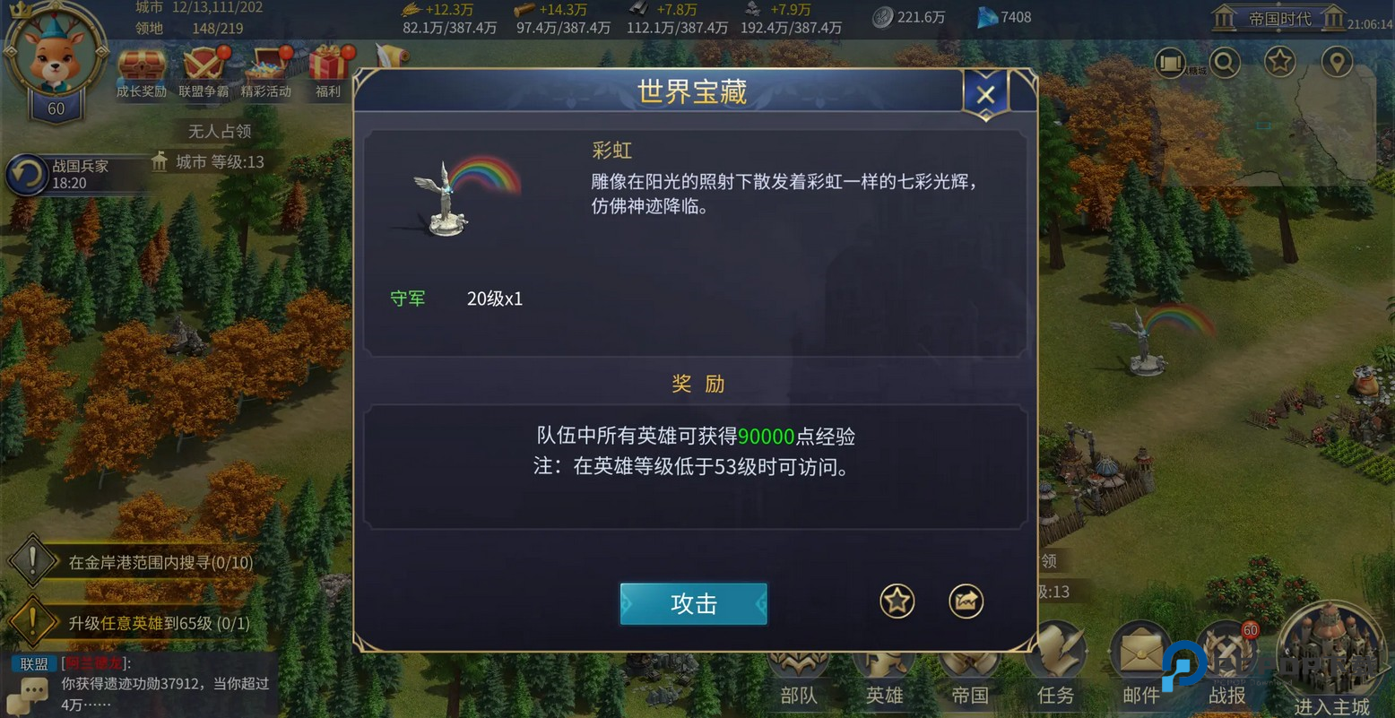 当然,比起秘境里刷彩虹的安逸,在新大陆打彩虹要累一些,彩虹之间相互隔的位置远一些。而且在文明一之后,新大陆的彩虹等级上限是53级,比秘境低(在文明一之前,二者等级上限是相同的)。不过前者也有它的优势,不限时间。当你的部队需要巨量经验(比如从1级开始升级),或者多只部队要升级,秘境半小时不够刷的时候,去新大陆是个不错的选择。另外,偷偷告诉你们一个小技巧,彩虹刷新的位置是固定的,在新大陆上找几个周围全是彩虹的风水宝地,升级的时候来回飞着刷光,等到“春暖花开”,啊不,等到地图刷新资源的时候,新的彩虹又会原地长出来,我们就能重复利用了。