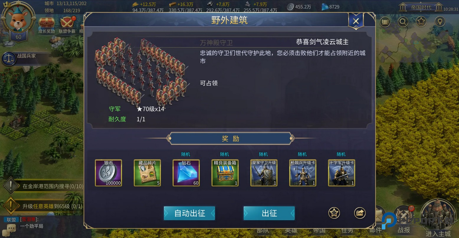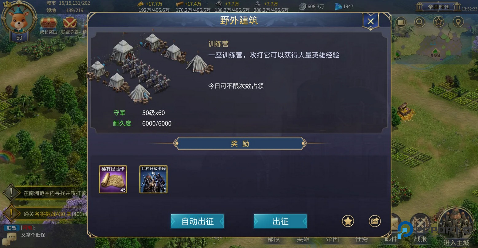 以三级训练营为例,有60队50级的经验包,啊不,50级的守军。