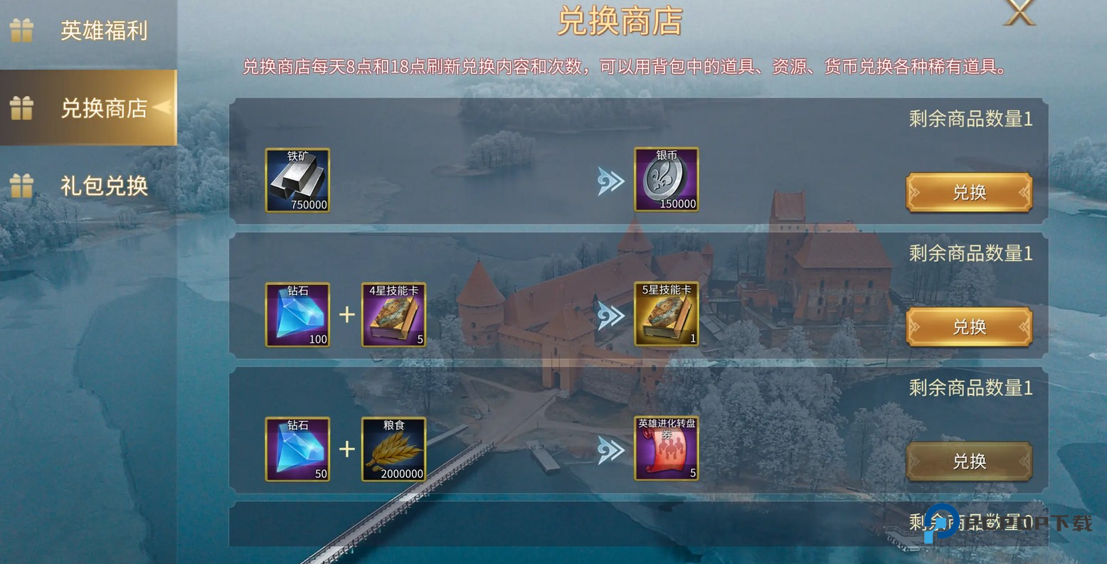 “积少以成多”,除了酒馆外,兵种卡也有一些其他来源。兑换商店每天会随机刷新两张兵种卡,遇到合适的一定要拿下;主城分城兵营升级成功会获得一张随机的兵种卡,所以城市建设不能停;兵种营地,提供固定种类的兵种卡,不过最多只能拿四张;城镇守卫提供随机兵种卡,奇迹守卫提供固定兵种卡(无上限),有能力的每天三次一定要打满;野外建筑(古堡,行商营地,战争学园)概率提供自选兵种卡,每天两次绝对不能错过。