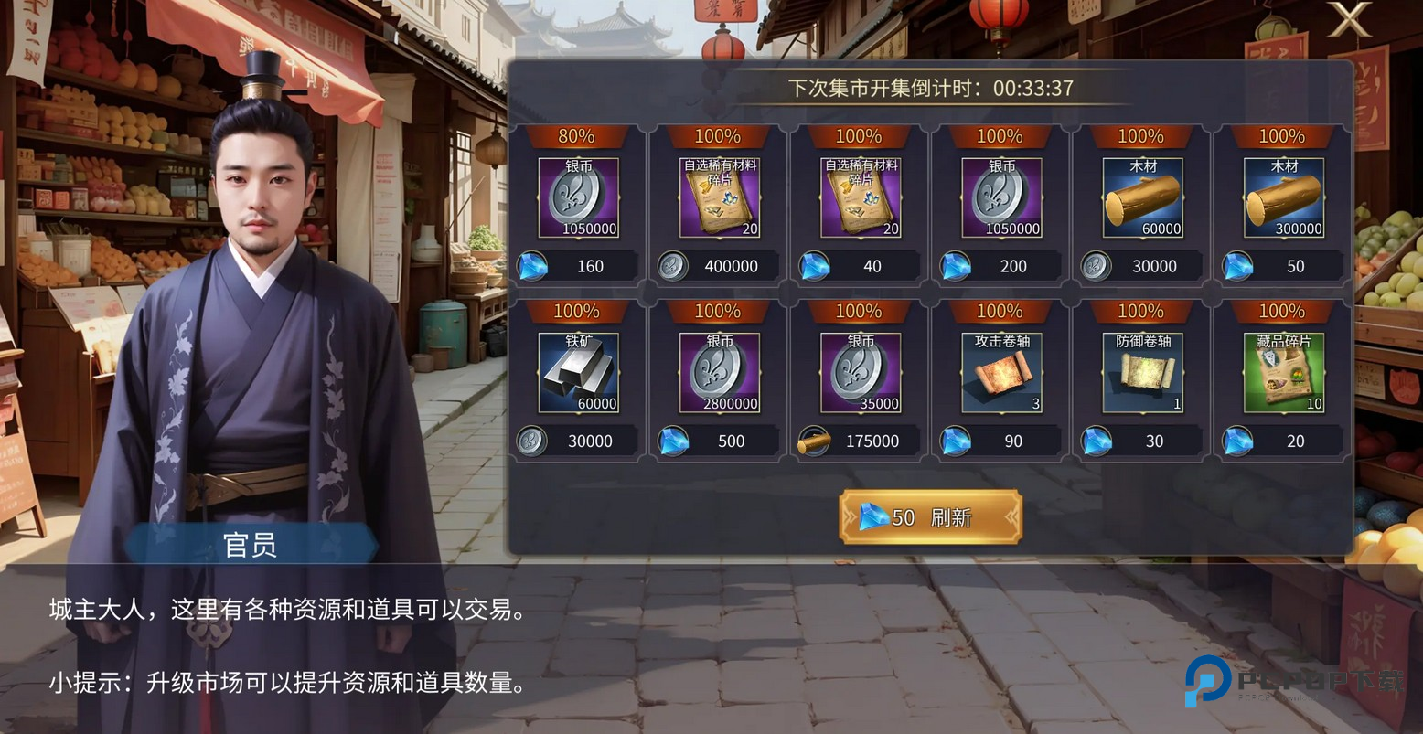 提升技能等级,主要资源是技能卡,对于土豪玩家来说,这不是问题,毕竟随便刷刷将,就一堆技能卡(蓝绿修改器的威力是无敌的),对于平民和小R来说,除了偶尔用钻石刷武将好感度获得外,技能卡获得有三条途径“商店适当换,集市勤逛逛,贸易去白嫖”。