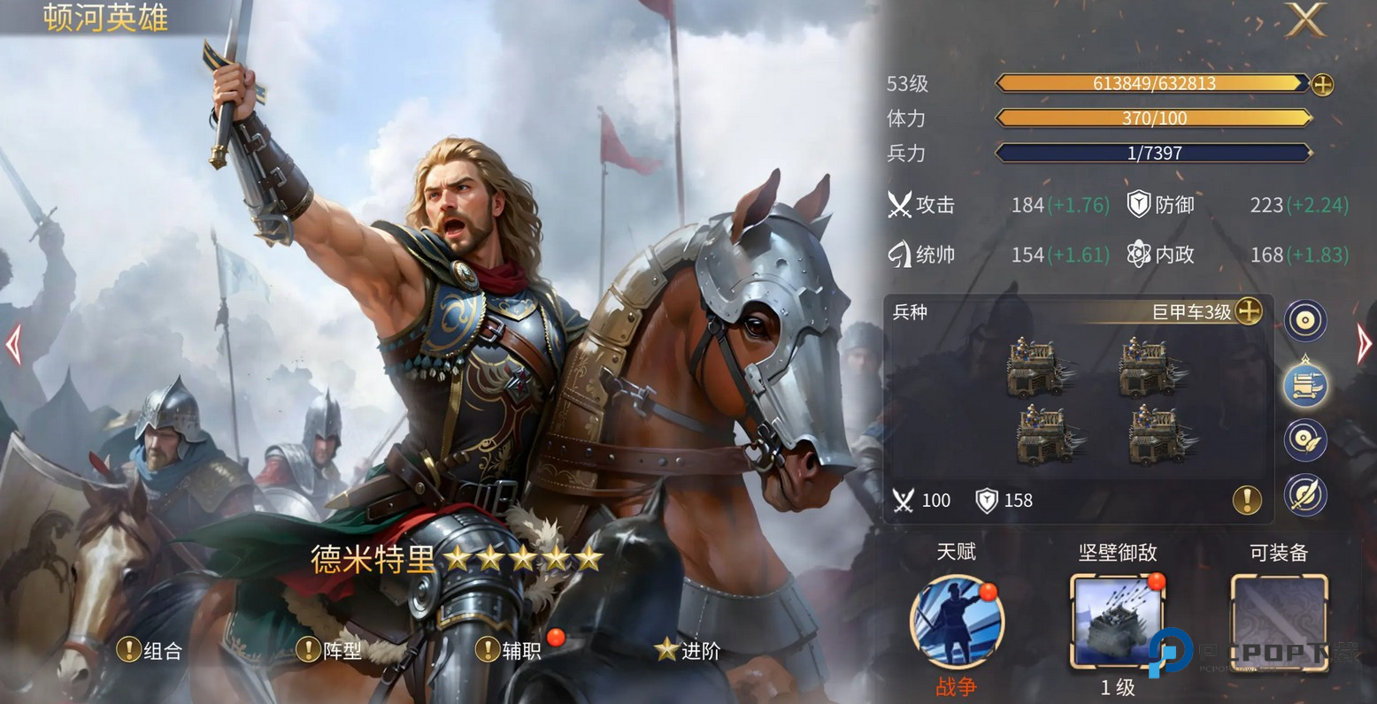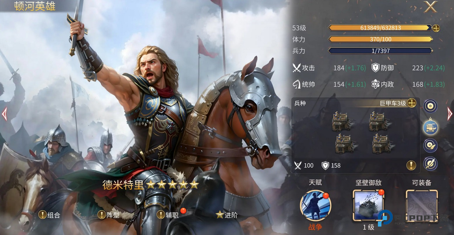 如图,在招募到顿河英雄后,我只将其兵种升到了三级。