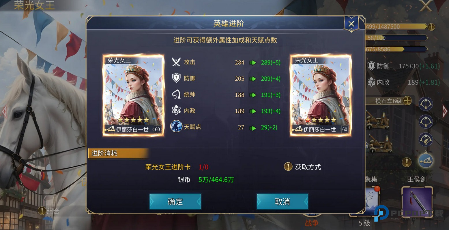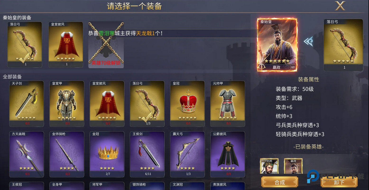 英雄60级,可以带两个不同位置的装备,以我带的两件50级装备为例,共加了8攻5防5统,兵种3穿透,也算不错的加成了。