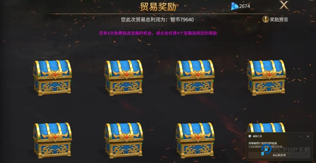 在每次跑商结束后,我们都能获得开宝箱的机会,宝箱的产出即为装备和加当前时代上限等级卷轴的高级水果。