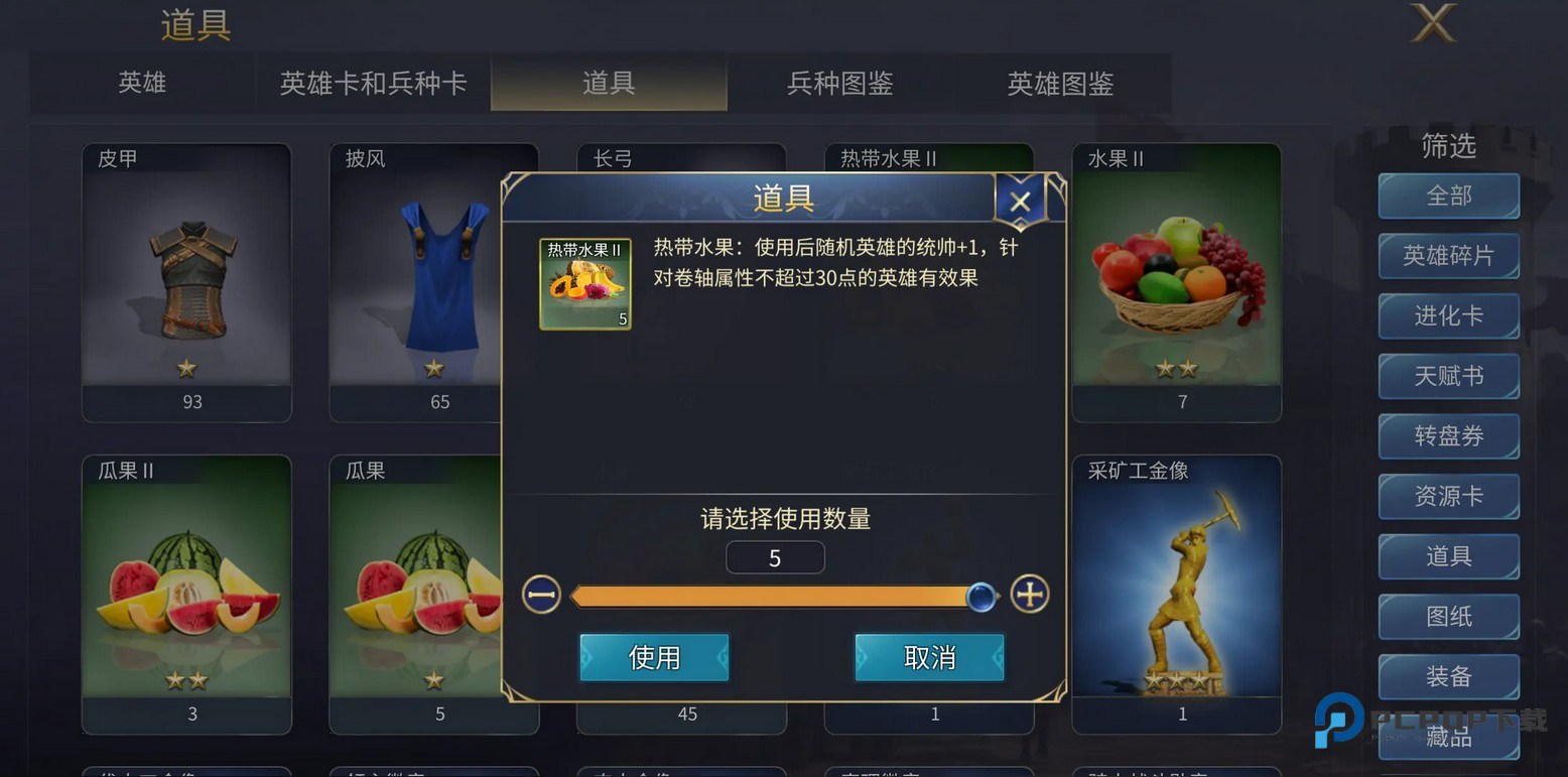 我们预览下英雄图鉴中,每个骑兵将领所带的兵种。很容易发现,相当多的英雄拥有双轮战车兵种,需要骆驼射手的寥寥无几。那么,问题就解决了,显然我们升级皇后的骆驼兵种,可以将使用范围更广的战车兵种卡留下,积攒起来。