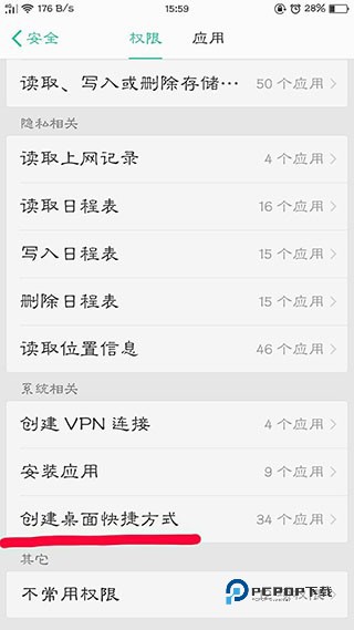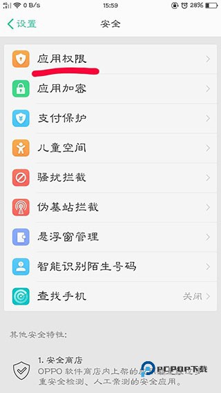 2、手机“设置”里面找到“应用权限”(此项一般都在“安全”里面,具体请咨询手机厂家或向您的楼管员寻求帮助)。