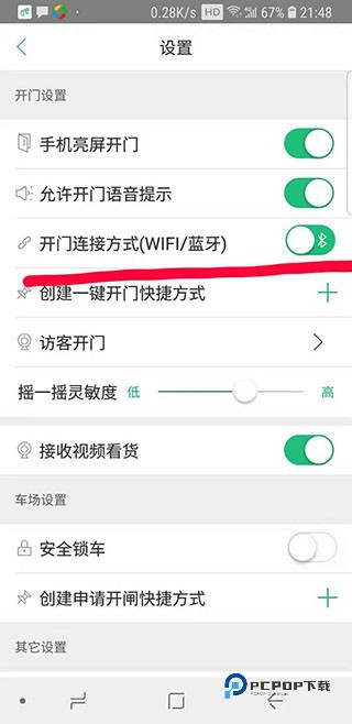 7、“开门连接方式”选择WIFI,苹果手机必须选择蓝牙连接,并且打开蓝牙设备。