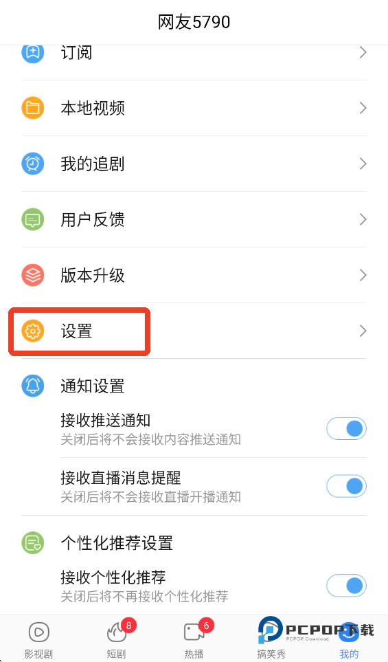1、在【我的】页面下滑点击设置。
