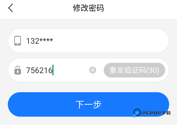 4、之后输入手机验证码,点击下一步。