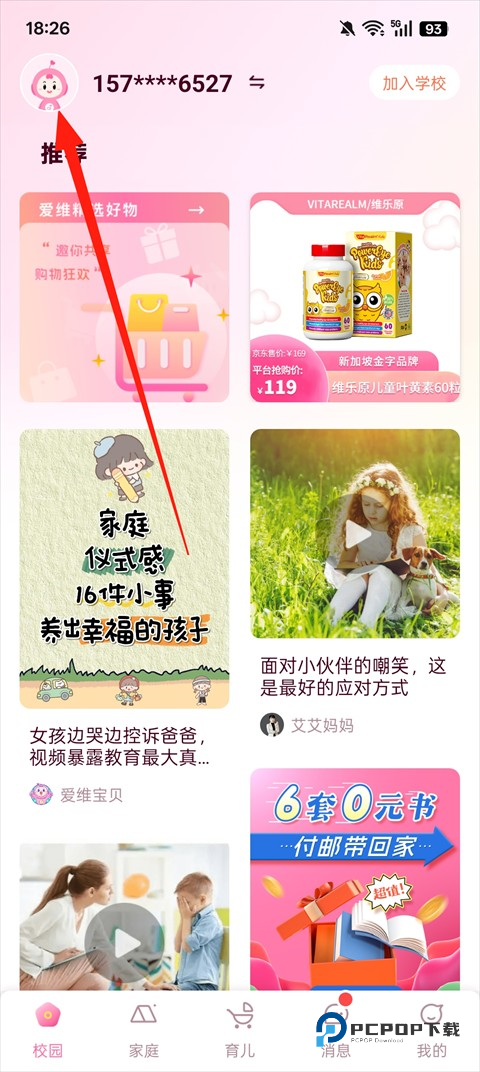 1、打开爱维宝贝软件,登录之后,点击左上角头像