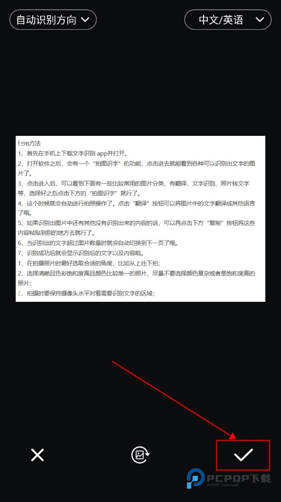 ★可以上传本地的照片进行识别,自动为你显示出所有的文字