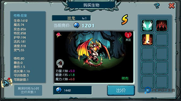 用途:出高成长高属性佣佣岩或者高力山岭替代前最好用的肉,用炎龙完全足够,不需要其他肉。