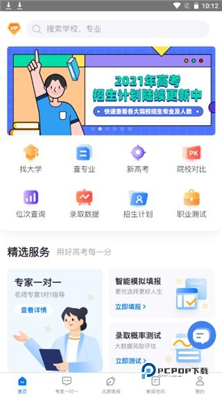 可查询全国2700+所院校在不同省份的招生预测分数线和名次线,基于高考大数据与人工智能算法进行特定学校与专业的分数线、排位线估计,评估考生录取概率。
