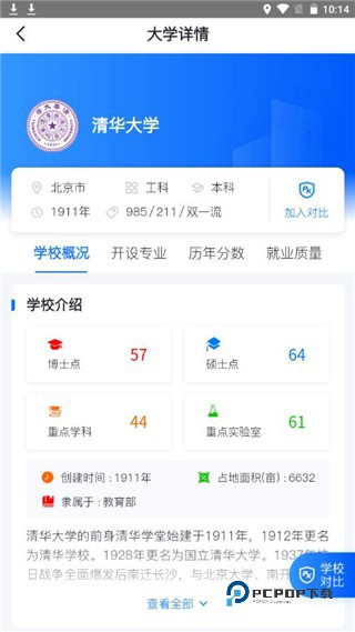 4、进入学校详情界面,在这里可以多个学校进行对比
