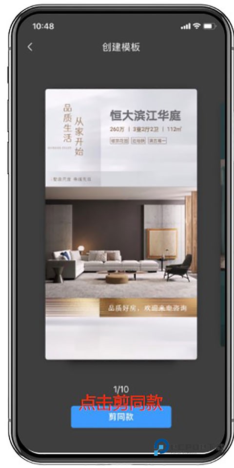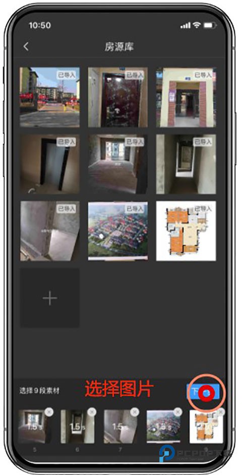 5、在房源库图片界面选择9张图片后点击下一步即可分享抖音。