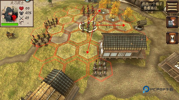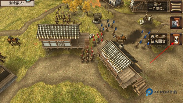 调整部队会消耗步数,玩家需要点击右边沙漏,进入敌方回合,等待敌方移动完之后,又能获得步数。慢慢移动到地方附近,等到可以攻击地方之后,直接选择地方部队进行进攻