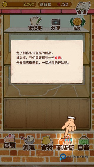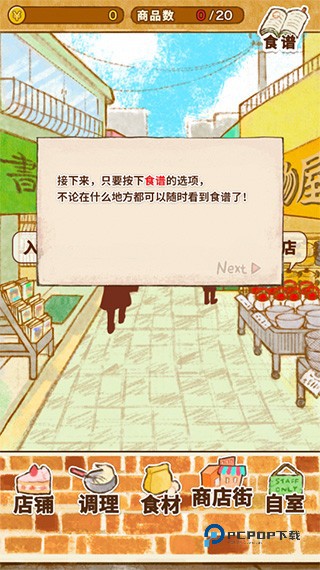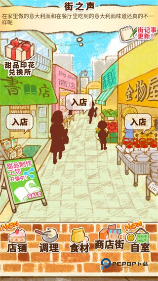 2、为了制作各式各样的甜品,首先呢,我们需要得到一份食谱。先去商店街逛逛,一切从采购开始吧;