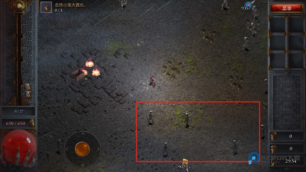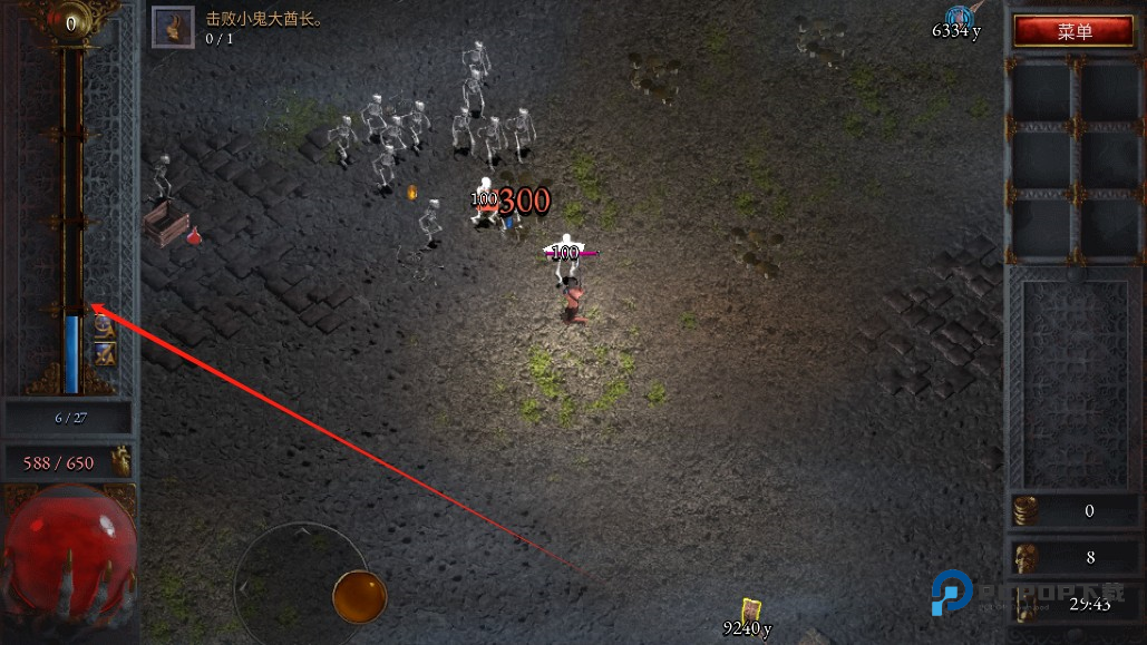 4、当角色属性强化得差不多时,就可以进入关卡挑战,开始对抗骷髅怪等初级敌人。