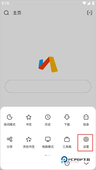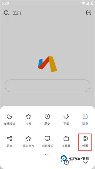 1、打开Via浏览器国际版,点击右下角的菜单按钮(三条横线),在弹出的面板中选择【设置】。