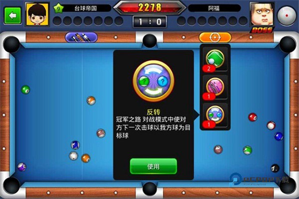 1、你将会在游戏中面临各种各样的对手,依靠自身强悍的台球技术,击败对方。