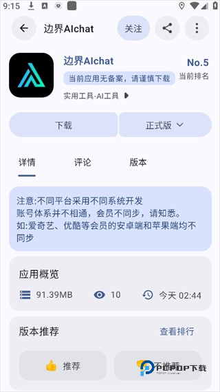 2、进入应用的详情页后,你会看到应用是否备案、大小、更新时间等核心信息。此页面还支持关注该应用和直接下载。
