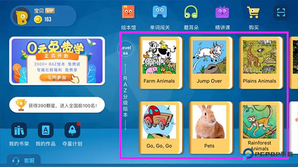 3、精细分级体系:设置从aa到Z共27个精细级别,全面覆盖从英语启蒙到高中毕业的各个学习阶段,每个级别包含约75本书籍,精准匹配不同年龄段、不同英语水平孩子的需求。