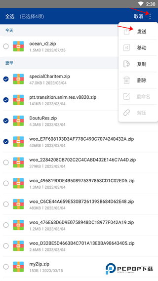 2、长按压缩包可以批量选择