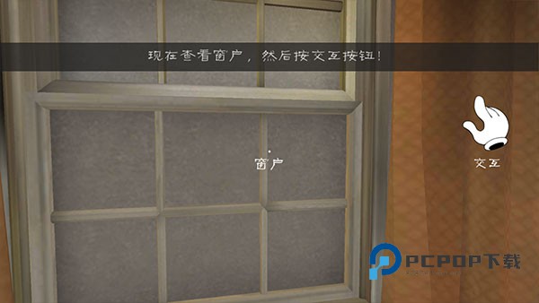4、环顾游戏环境,查看窗户点击交互按钮,罗德出现;