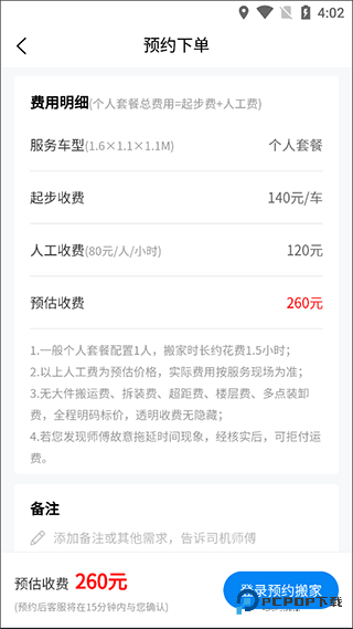 3、在预约下单页面我们还能查看详细的费用明细,最后登录即可完成预约。