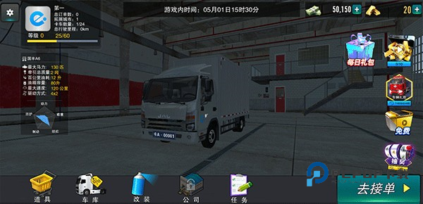 1、进入卡车之星游戏,选择总部所在地以及公司名称后,点击右下角去接单。