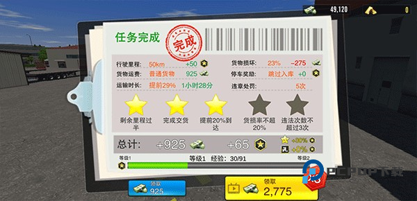 5、在运输过程中,玩家通过下方地图导航至运输终点,但在运输途中注意系好安全带,不要违反交通规则,不然不仅会返款扣钱,还会造成货损。