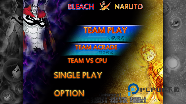 1、进入死神VS火影绊175人版,选择游戏模式进入,有小队闯关、单人闯关、对战电脑模式。