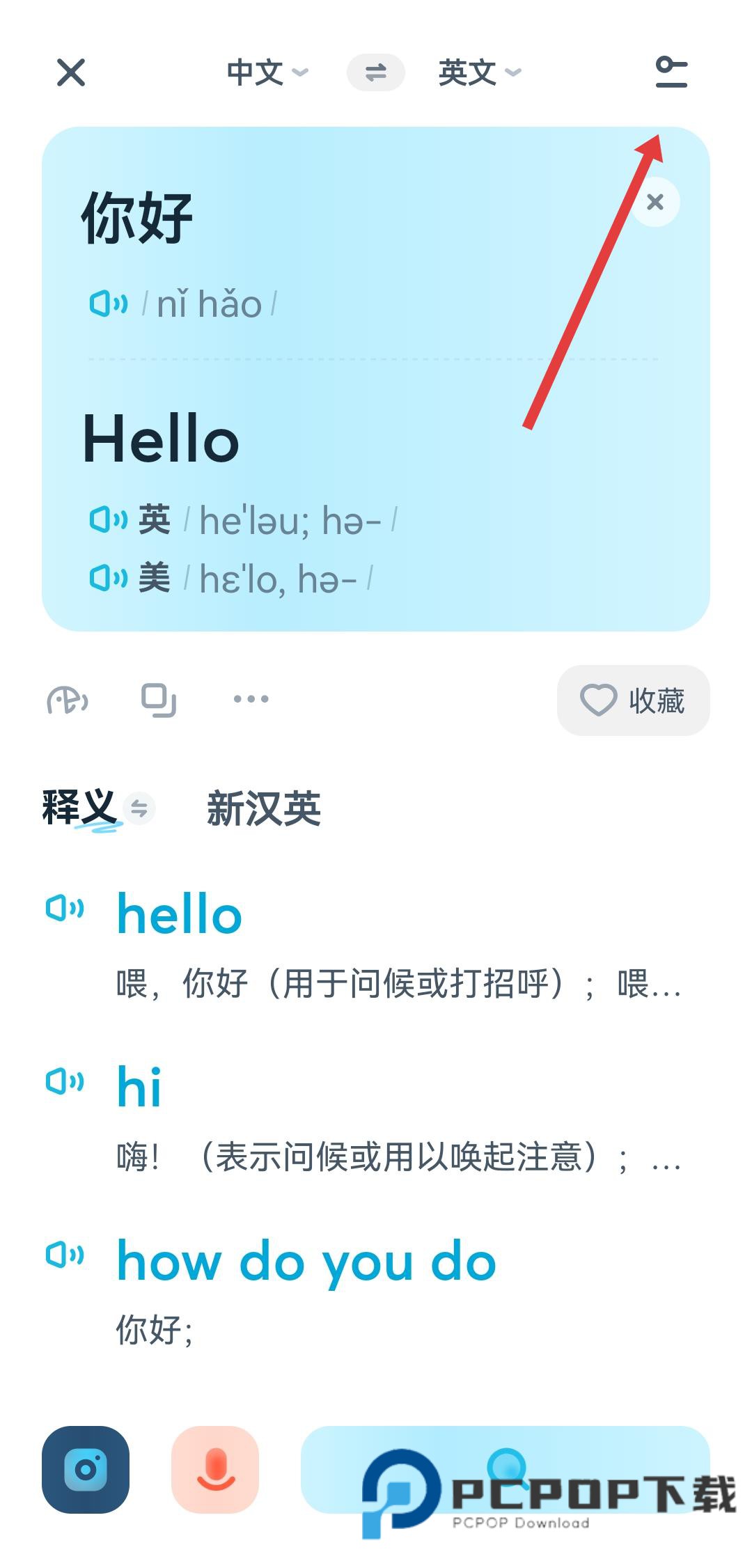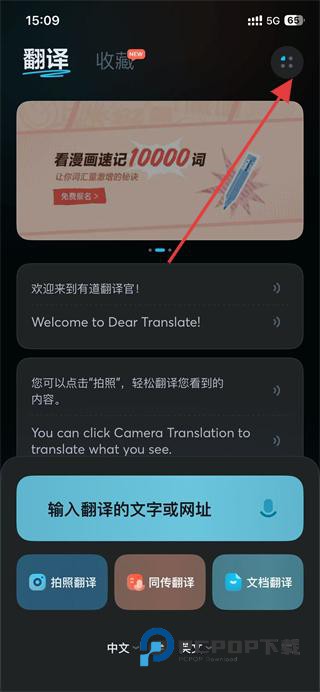 1、打开有道翻译官APP,点击页面右上角的按钮。