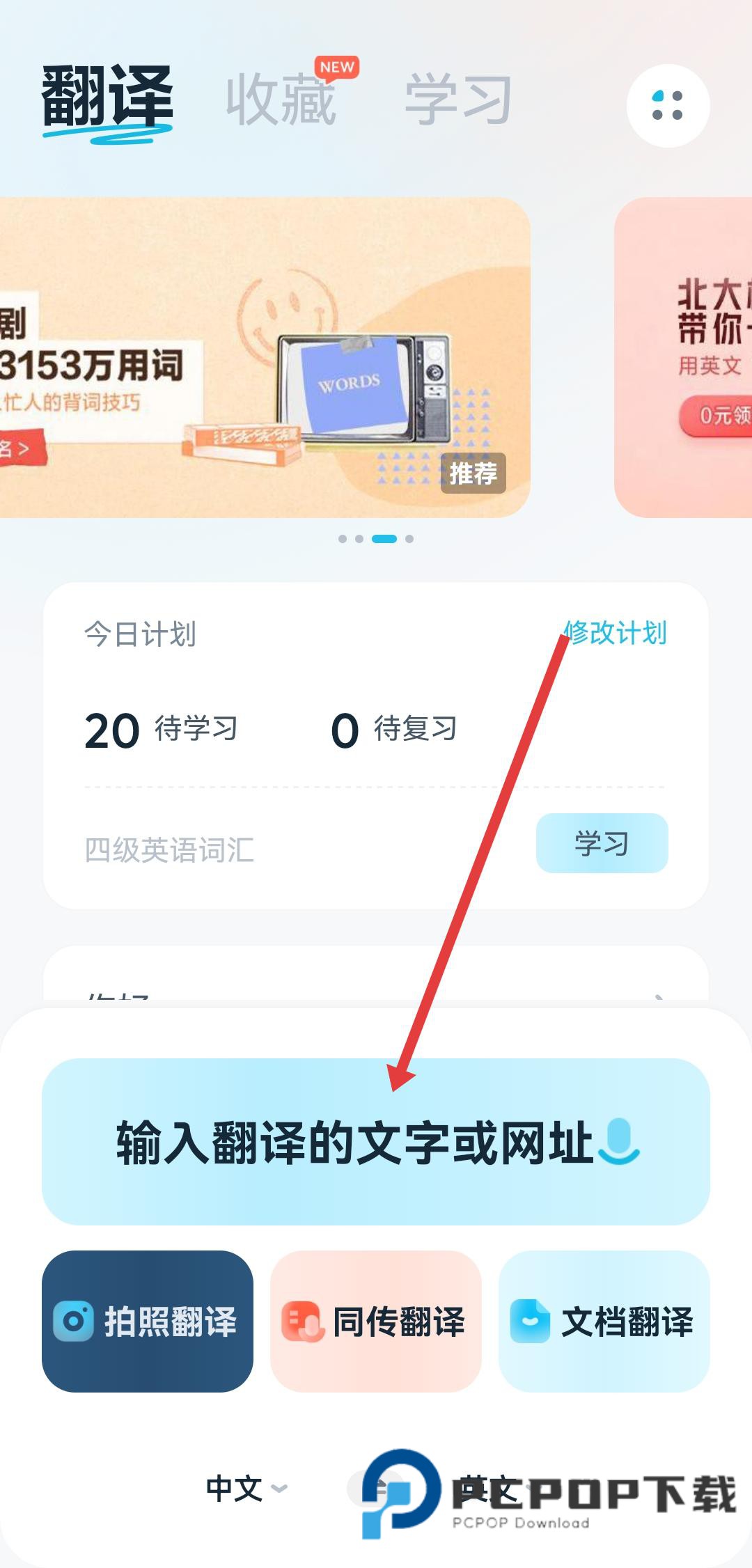 1、打开有道翻译官APP,在主界面的输入框中输入要翻译的内容。